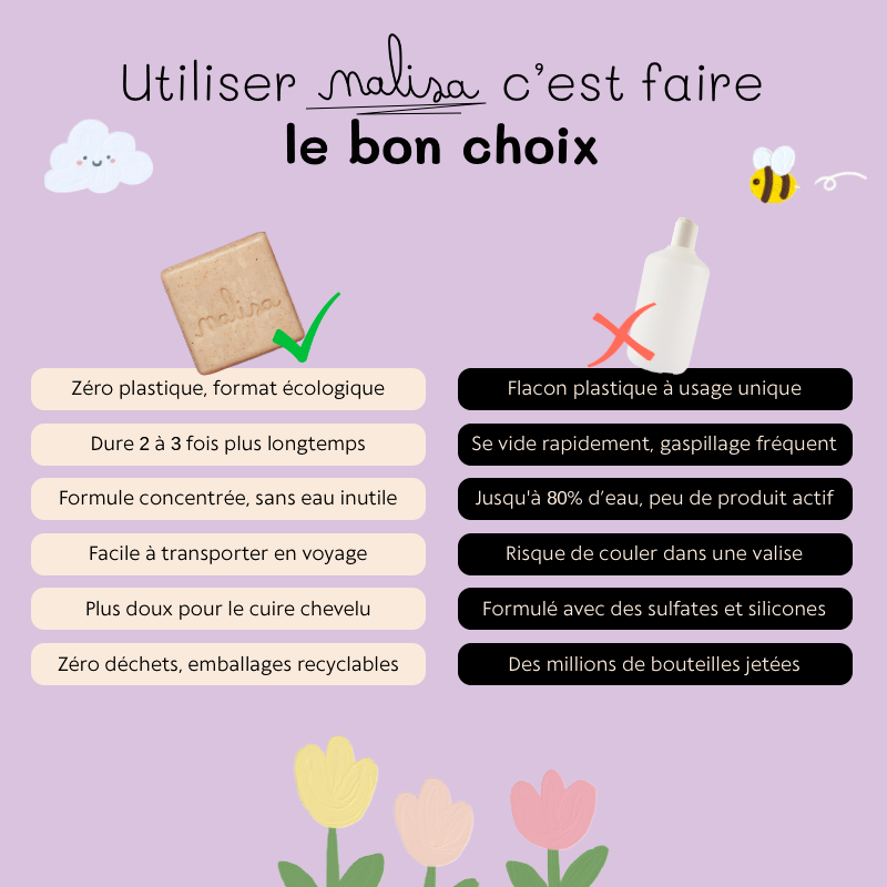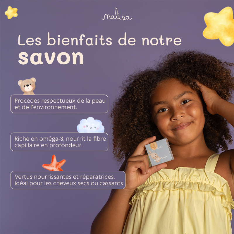 Complète tes soins avec nos indispensables : un shampoing solide Nalisa et un porte-savon élégant pour prolonger sa durée de vie.
